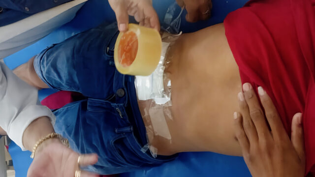 Beni, 08/10/2025.- En el hospital público de Riberalta, Beni, el personal de salud se ve obligado a realizar curaciones con cinta diurex (cinta adhesiva de oficina) ante la falta de tela adhesiva médica, un insumo básico para la atención de pacientes.