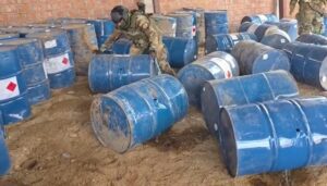 “En coordinación con agentes de la Unidad Móvil de Patrullaje Rural (UMOPAR), se ejecutó el allanamiento de un depósito, donde se halló un total de 190 turriles con sustancias químicas, consistentes en 23.200 litros de acetato, 12.200 litros de ácido clorhídrico, 2.600 litros de ácido clorhídrico, 750 kilos de clorhidrato de tetramisol y 200 litros de acetato de etilo, insumos que son utilizados para la elaboración de sustancias controladas, en el lugar tambien se procedió al secuestro de ocho motorizados, de la misma forma debemos confirmar la aprehensión de cinco personas presuntamente vinculadas a estos delitos”, señaló Tejerina.