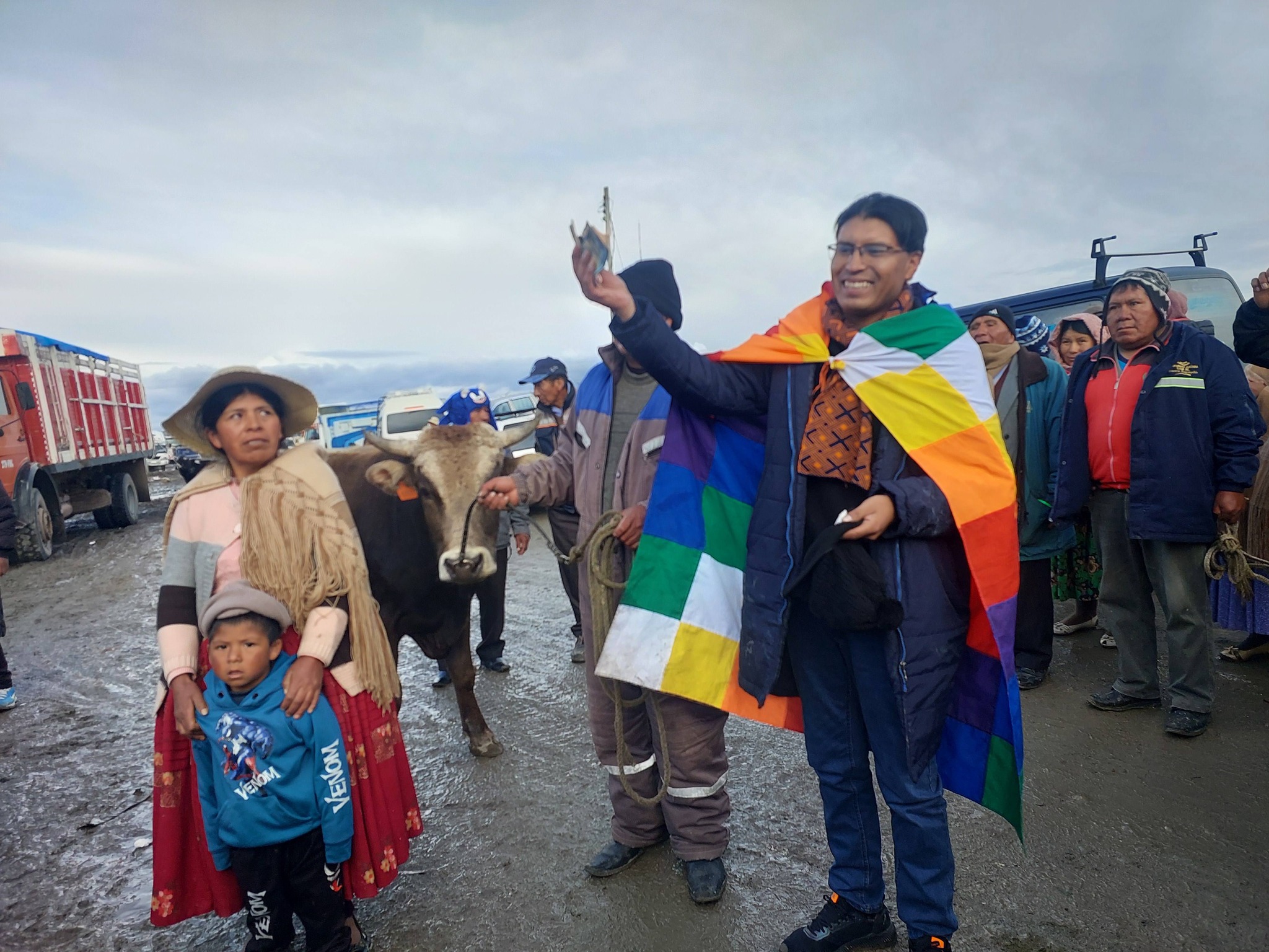 El senador del Partido Demócrata Cristiano (PDC), Milton Condori, protagonizó este domingo un hecho inusual al acudir a la feria del municipio de Achacachi, en el departamento de La Paz, donde subastó uno de sus toros por un monto de 10.500 bolivianos. Según explicó, los recursos obtenidos serán destinados a financiar una gira nacional con el objetivo de consultar directamente a la población sobre la reducción del salario de los legisladores.
