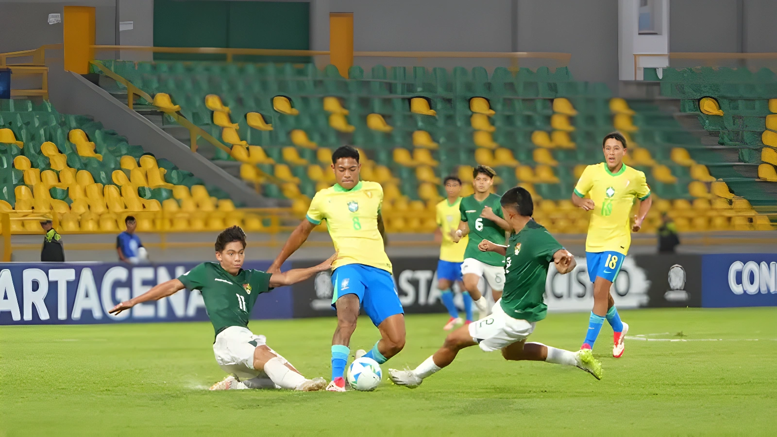 Desde los primeros minutos del compromiso, el conjunto brasileño impuso su dominio en el campo de juego, reflejándolo rápidamente en el marcador. El primer tiempo concluyó con un parcial de cuatro goles en contra para Bolivia, dejando prácticamente definido el partido antes del descanso.